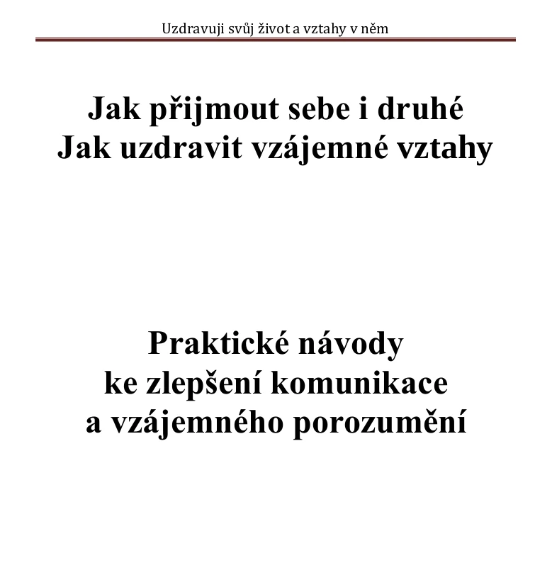 Tato knížečka je určena pro každého, kdo touží přiblížit se sám sobě i druhým lidem, porozumět jim, uzdravovat své vztahy a být v nich šťastný.